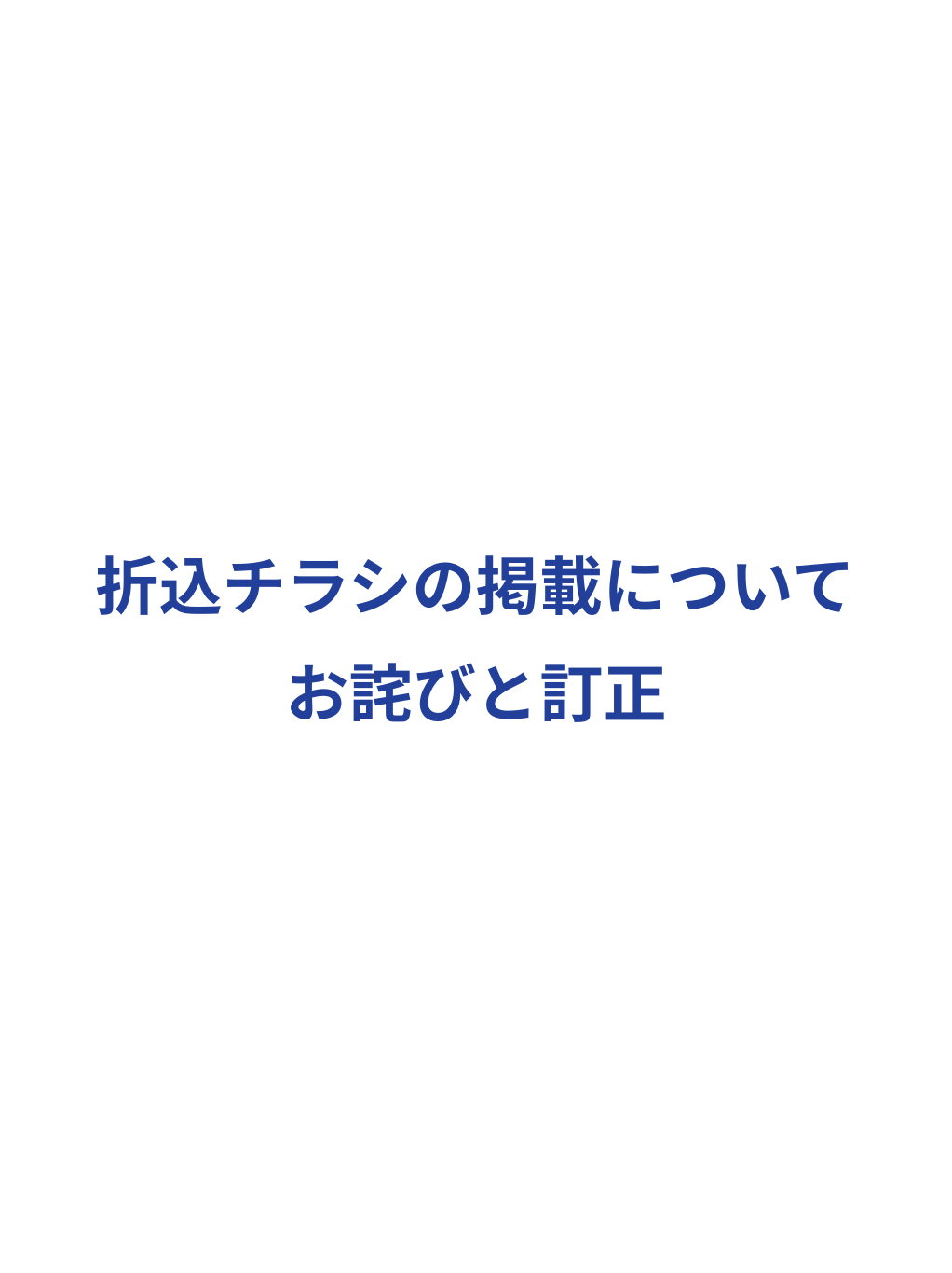 松戸市内の一部地域で配布しております折込チラシにつきまして、掲載内容の一部に誤りがございました。対象地域のお客様にはご迷惑をおかけいたしましたこと、深くお詫び申し上げます。つきましては、以下の通り訂正させていただきます。
